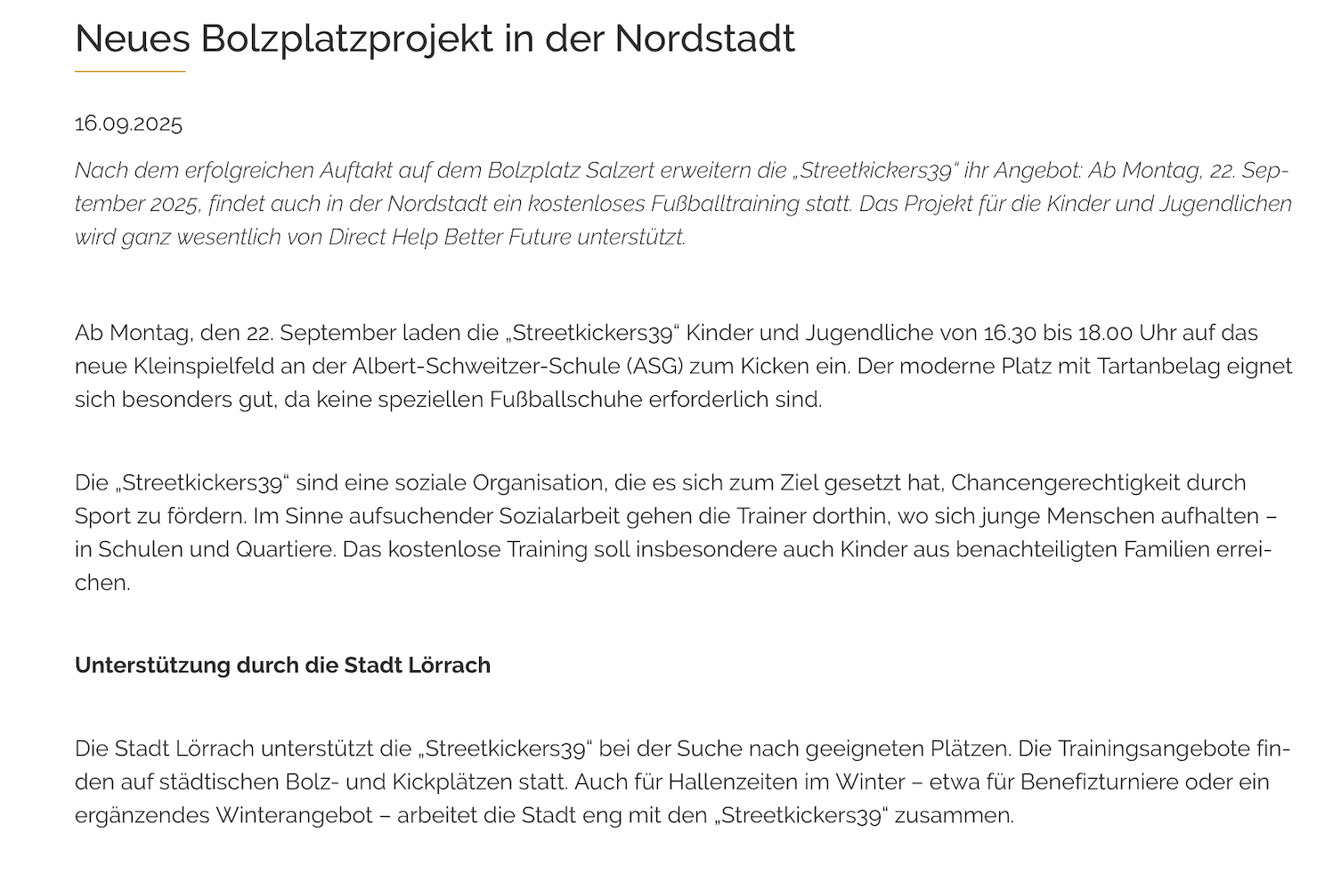 Das schreibt der Südkurier über streetkickers 39